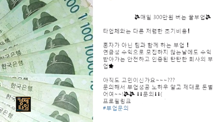 뿐만 아니라, 최근에는 클릭만으로 돈을 번다고 거짓말을 하고 선입금을 받는 댓글 알바나, 가입을 유도하는 다단계 같은 것들이 있어 많은 사람들의 피해가 잇따르고 있습니다.