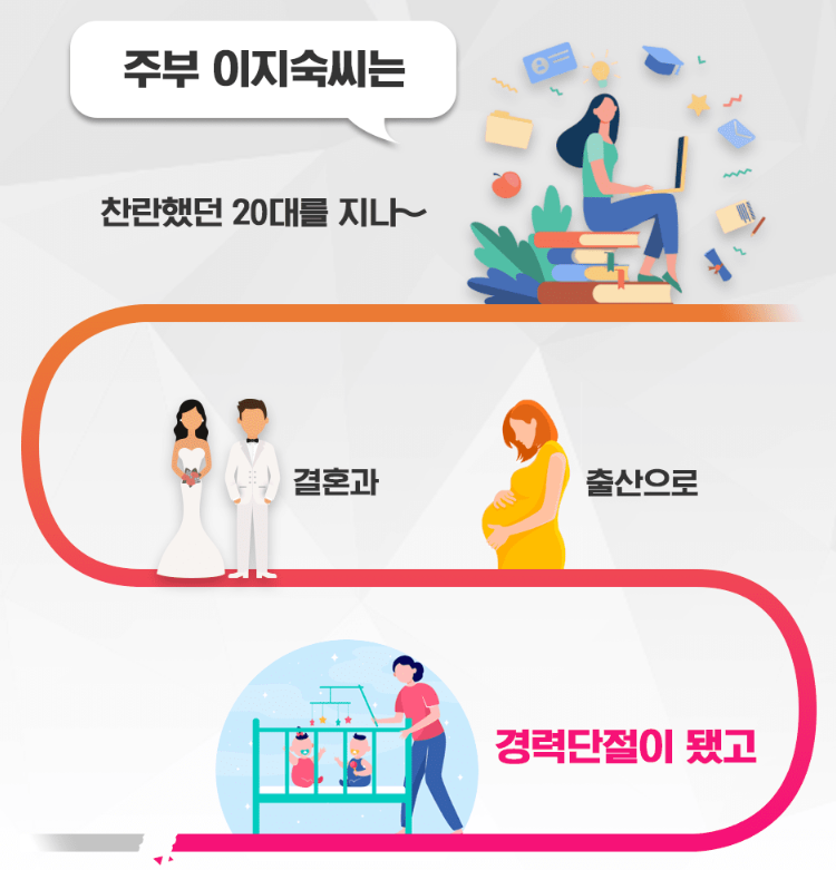 실제로 42세 주부, 이지숙 씨는 찬란했던 20대를 지나 결혼과 출산을 거치며 경력단절이 현실이 되었습니다.