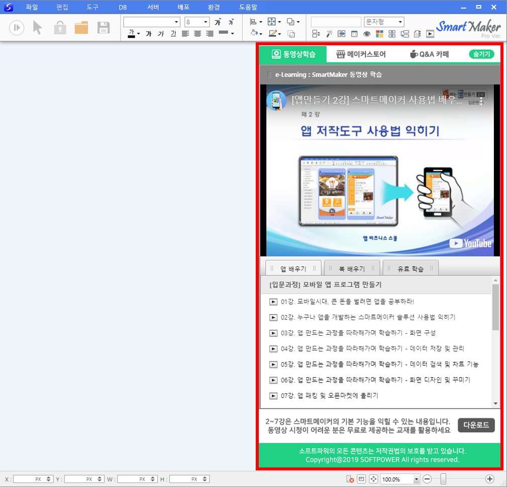 무료로 제공되는 영상의 경우 smartmaker를 실행하면 화면 오른쪽에 나타납니다.