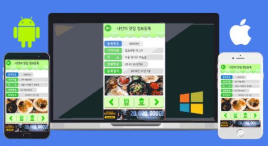 뿐만 아니라 스마트메이커는 구글 플레이스토어와 원스토어에 올릴 수 있는 안드로이드는 물론이고, 아이폰 앱스토어에 올릴 수 있는 iOS까지 한 번에 만들 수 있으며 웹페이지까지도 모두 만들 수 있습니다.