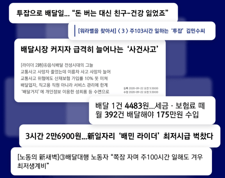 그리고 배달대행 투잡이 돈을 많이 번다는 소문도 사실은 거짓이었습니다. 월평균 392건을 배달해야 175만 원 수입을 얻을 수 있는 것입니다.