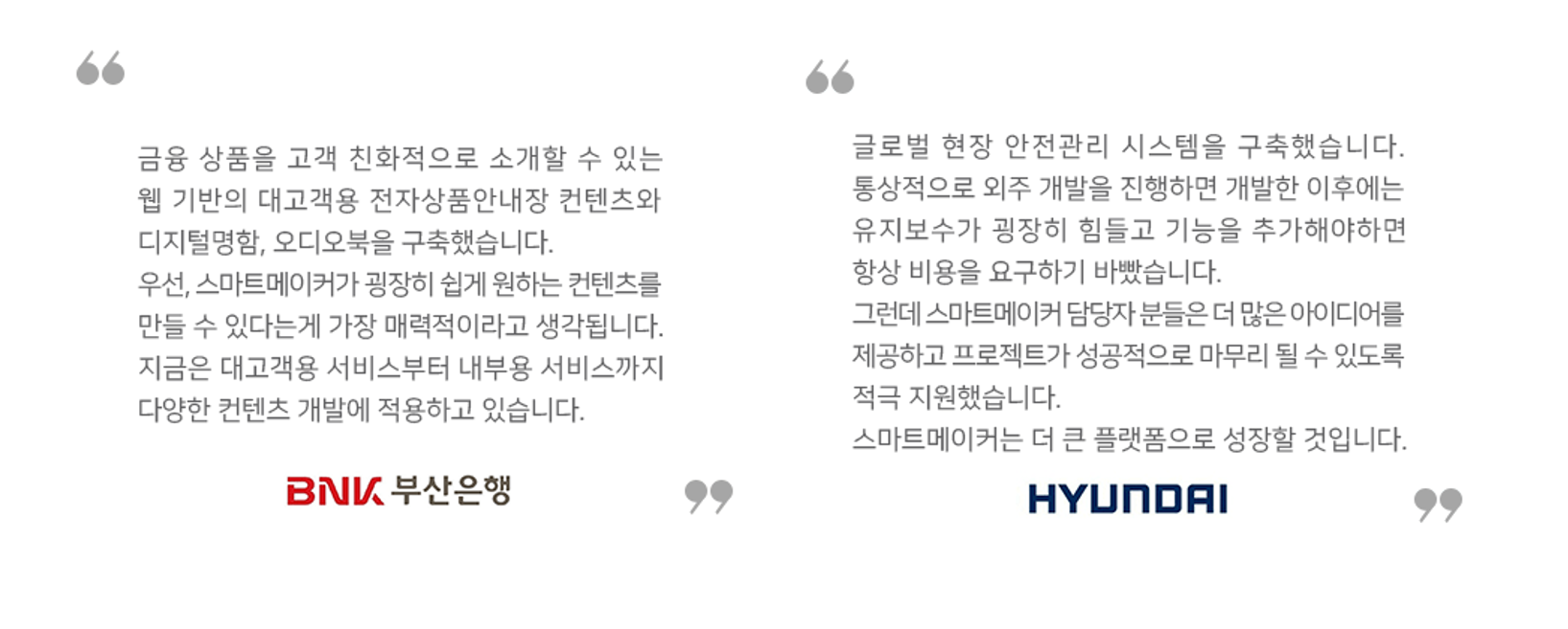 대기업인 현대와 은행권에서도 스마트메이커를 선택하였습니다.