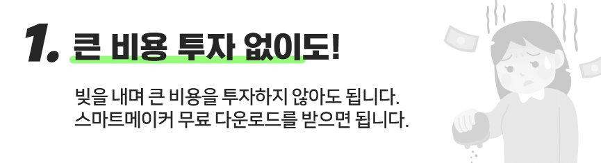 경력단절로 인해 일자리가 없던 45세 주부 최 씨 역시도 주식으로 많은 돈을 잃었지만, 스마트메이커를 알게 되어 자신의 주부 경력 노하우를 살린 앱을 만들었고 매월 돈을 벌고 있습니다.