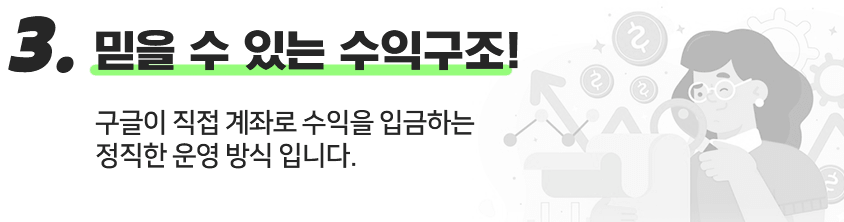 구글이 직접 계좌로 수익을 입금해 주기 때문에 걱정할 필요가 없습니다.